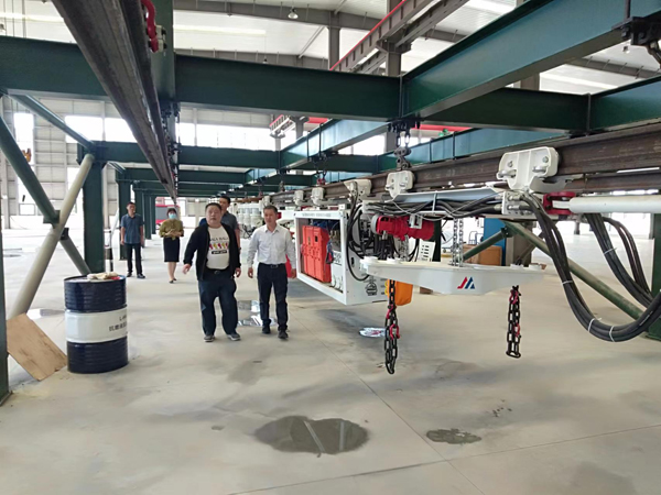 活动结束,李董向领导一行展示辅助运输系统---单轨吊。