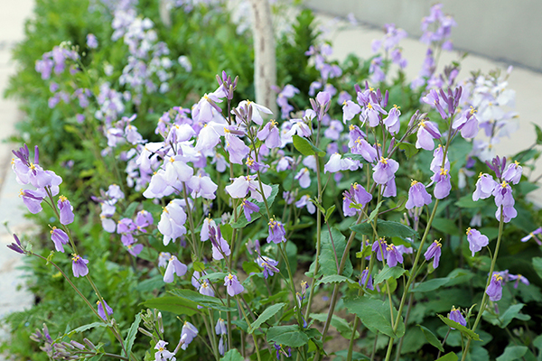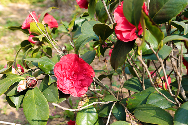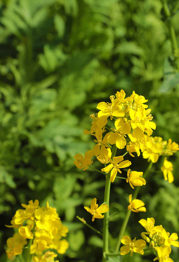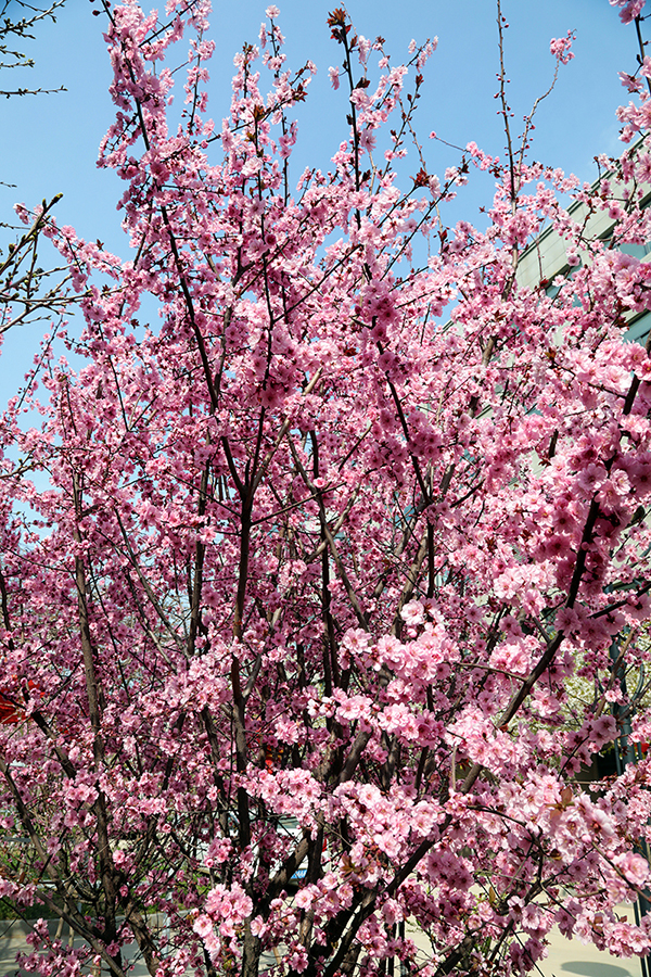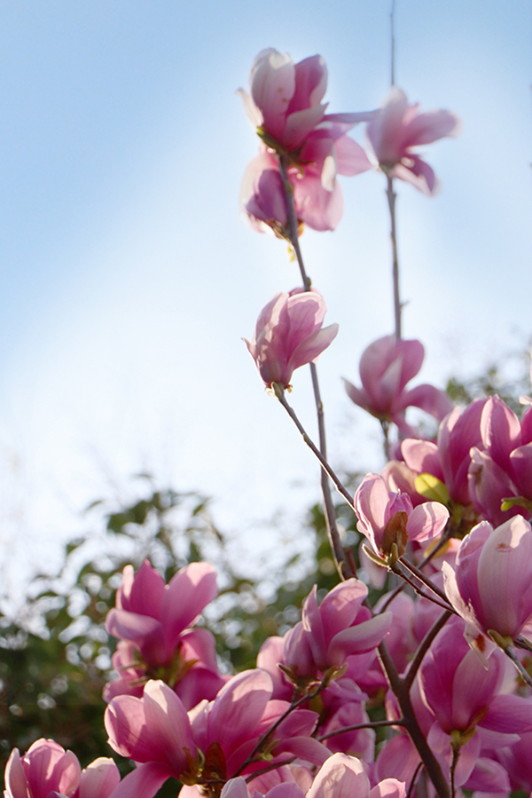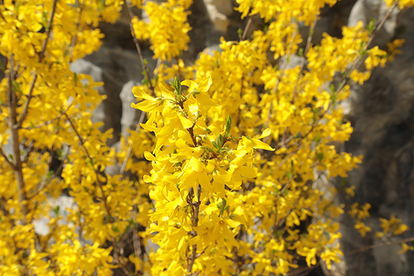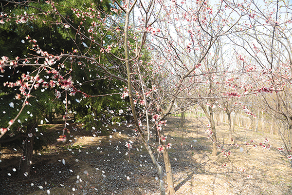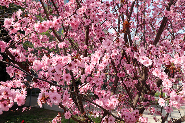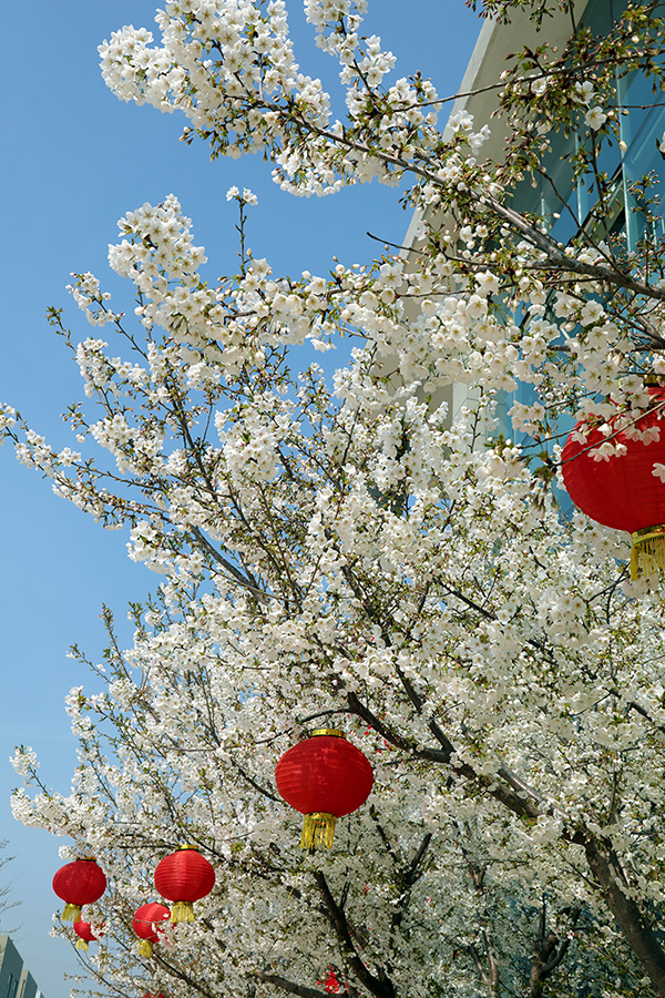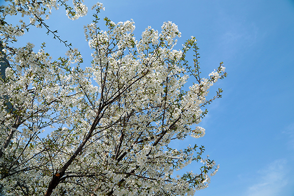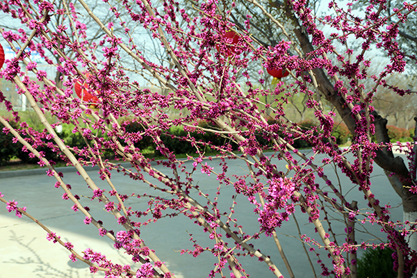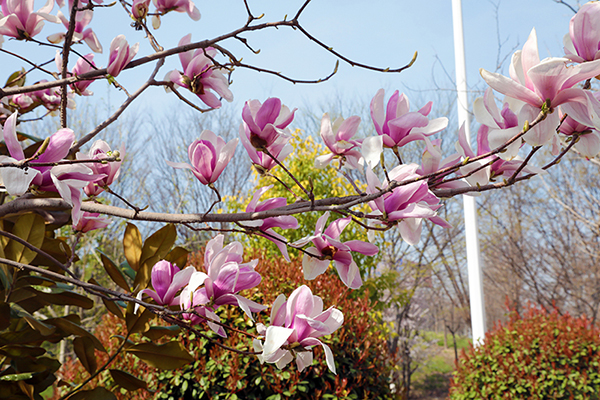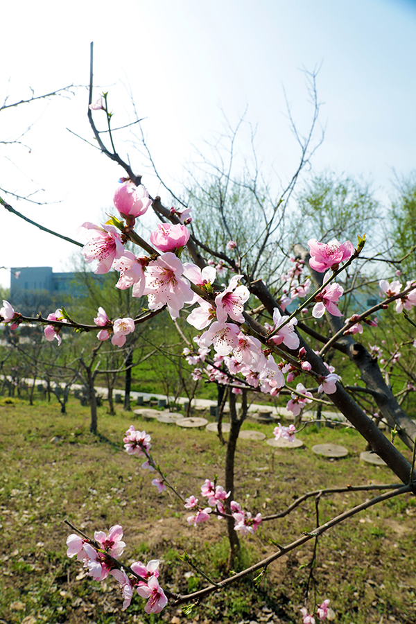 各色花朵盛放红的、白的、黄的......春风每到一处便让一处染上了颜色。