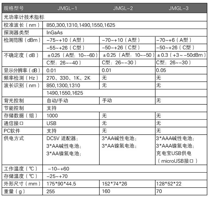 三、产品特点: 1、支持波长识别; 2、支持频率检测; 3、支持智能背光控制; 4、支持USB数据通信; 5、大容量数据存储; 6、支持交流适配器供电、碱性电池、 镍氢充电电池供电; 7、支持上位机软件操作; 8、支持自动关机、节电节能。