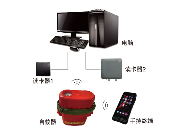 一、概述该系统主要是应用于煤矿井口,检测压缩氧自救器表头压力及维护日期。在井上通过后台进行人员与设备的绑定,当下井人员通过井口时,读卡器读取自救器信息并公示在大屏上。若显示设备状态为欠压,应返回厂家及时充气,若提示已过维修日期,维修后通过手持终端APP更新信息并上传至后台。二、主要技术指标1、电子标签读卡距离:≥8m;2、NFC卡读卡距离:0~10mm;3、读卡时间:≤1s;4、欠压报警值:15Mpa。三、系统构成管理系统硬件主要由压缩氧自救器、矿用本安型手持终端、读卡器1、读卡器2、电脑和无线路由器等组成。