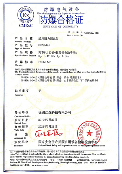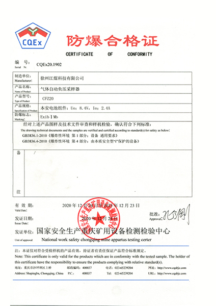 | 序号 | 产品名称/型号 | 煤安证 | 防爆证 | 矿安证 | 3C认证证书 | 计量器具型式批准证 | 专利证书 | 高新技术产品认定证书 | 软件著作权登记证书 |