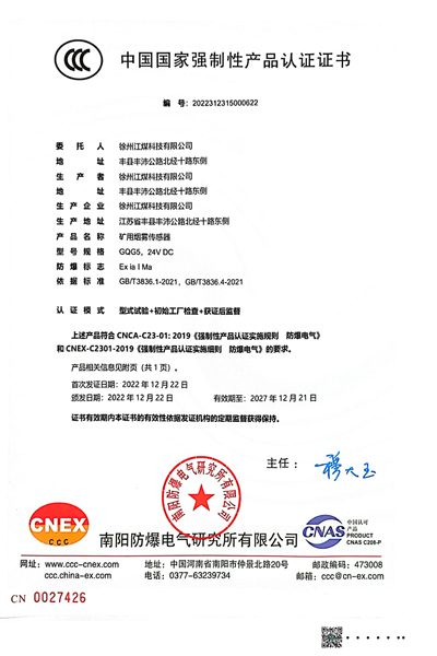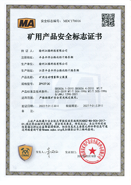 | 序号 | 产品名称/型号 | 煤安证 | 防爆证 | 矿安证 | 3C认证证书 | 计量器具型式批准证 | 专利证书 | 高新技术产品认定证书 | 软件著作权登记证书 |