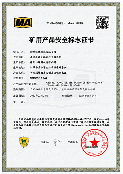 | 序号 | 产品名称/型号 | 煤安证 | 防爆证 | 矿安证 | 3C认证证书 | 计量器具型式批准证 | 专利证书 | 高新技术产品认定证书 | 软件著作权登记证书 |